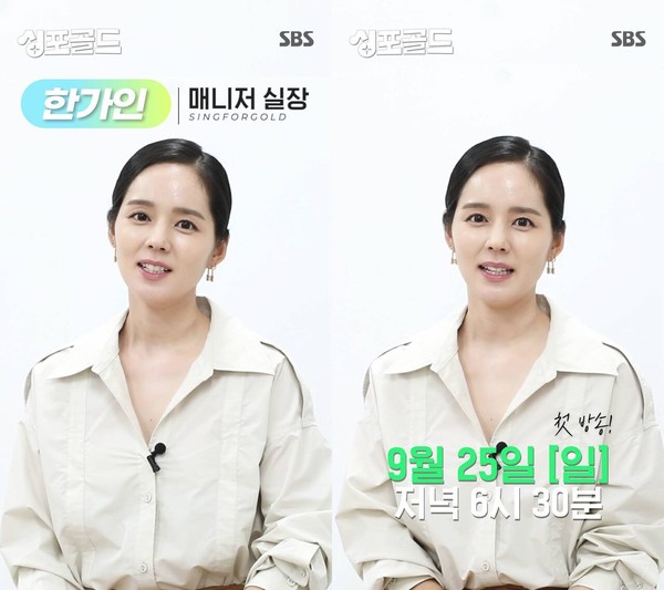 마지막으로 한가인은 ‘싱포골드’라는 키워드에 대해 “이 무대를 위해 준비하는 그 과정이 너무 반짝반짝 빛난다. 되게 감동적이다”라며 첫 방송 시청을 독려했다.