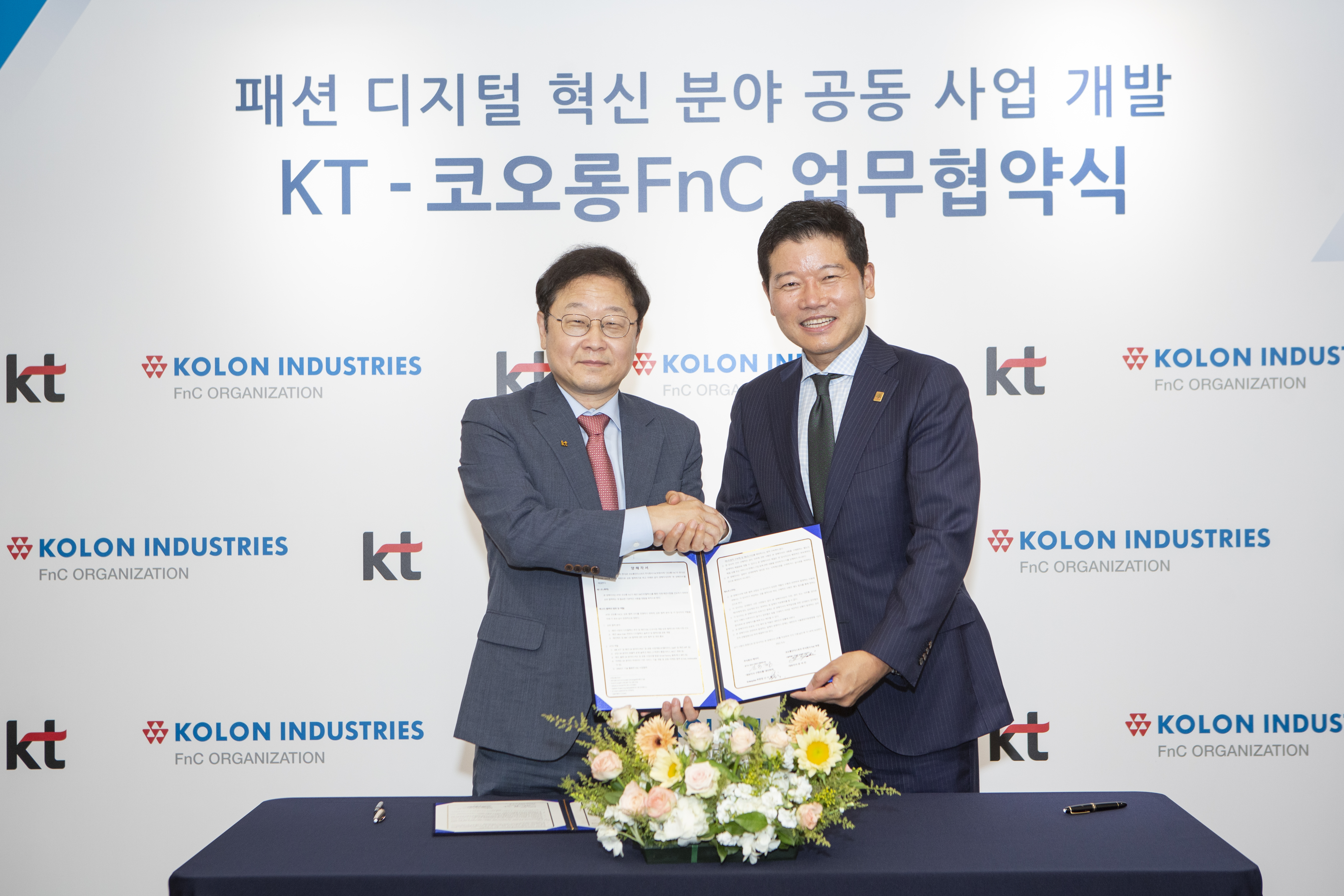 KT가 코오롱FnC와 패션 시장의 디지털전환(DX)과 ESG 신규 사업 협력을 함께 추진 한다고 7일 밝혔다. 양사는 6일 서울시 강남구 코오롱FnC 본사 사옥에서 이 같은 내용을 핵심으로 한 업무 협약(MOU)을 맺었다.