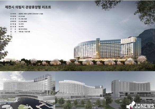 사업비 1,200억 원 규모의 제천 의림지복합리조트 건립 사업은 올해 3월 말 건설업체인 삼부토건과 부동산 개발업체 (주)화우, 반도체 장비업체 (주)코디엠이 컨소시엄으로 참여해 오는 2024년까지 송학면 도화리 현 청소년수련원 부지 6만 1914㎡(약 18,748평)에 250실 내외 규모로 건설될 예정이다.