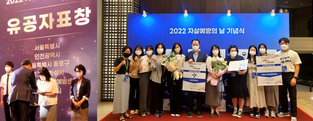 서울시자살예방센터는 9월 7일 ‘2022년 자살예방의 날(9.10)’을 맞아 진행된 보건복지부 자살예방의 날 기념식(부제:‘사람을 더하세요’)에서 3년 연속 ‘자살예방 우수사례’에 선정돼 보건복지부장관상을 수상했다.
