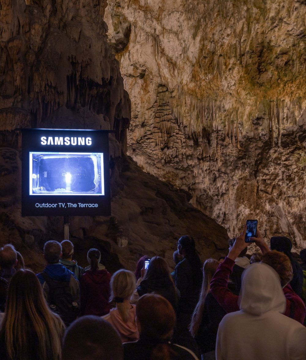 삼성전자가 슬로베니아의 대표 관광지인 포스토이나 동굴(Postojna Cave)에 아웃도어용 라이프스타일TV ‘더 테라스(The Terrace)’를 설치해 관광객들에게 차별화 된 경험을 제공한다.