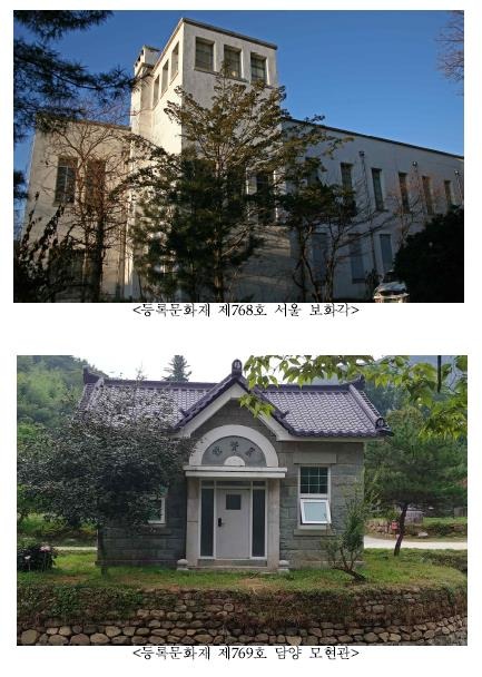 문화재청은 '서울 보화각', '담양 모현관', '서울 연세대학교 핀슨관', '송기주 네벌식 타자기', '대한민국임시의정원인', '대한민국임시의정원 문서'(추가등록) 등 6건(추가등록 포함)을 문화재로 등록하고, '김천 나화랑 생가', '광주 구 무등산 관광호텔'등 2건을 등록 예고했다고 30일 밝혔다.