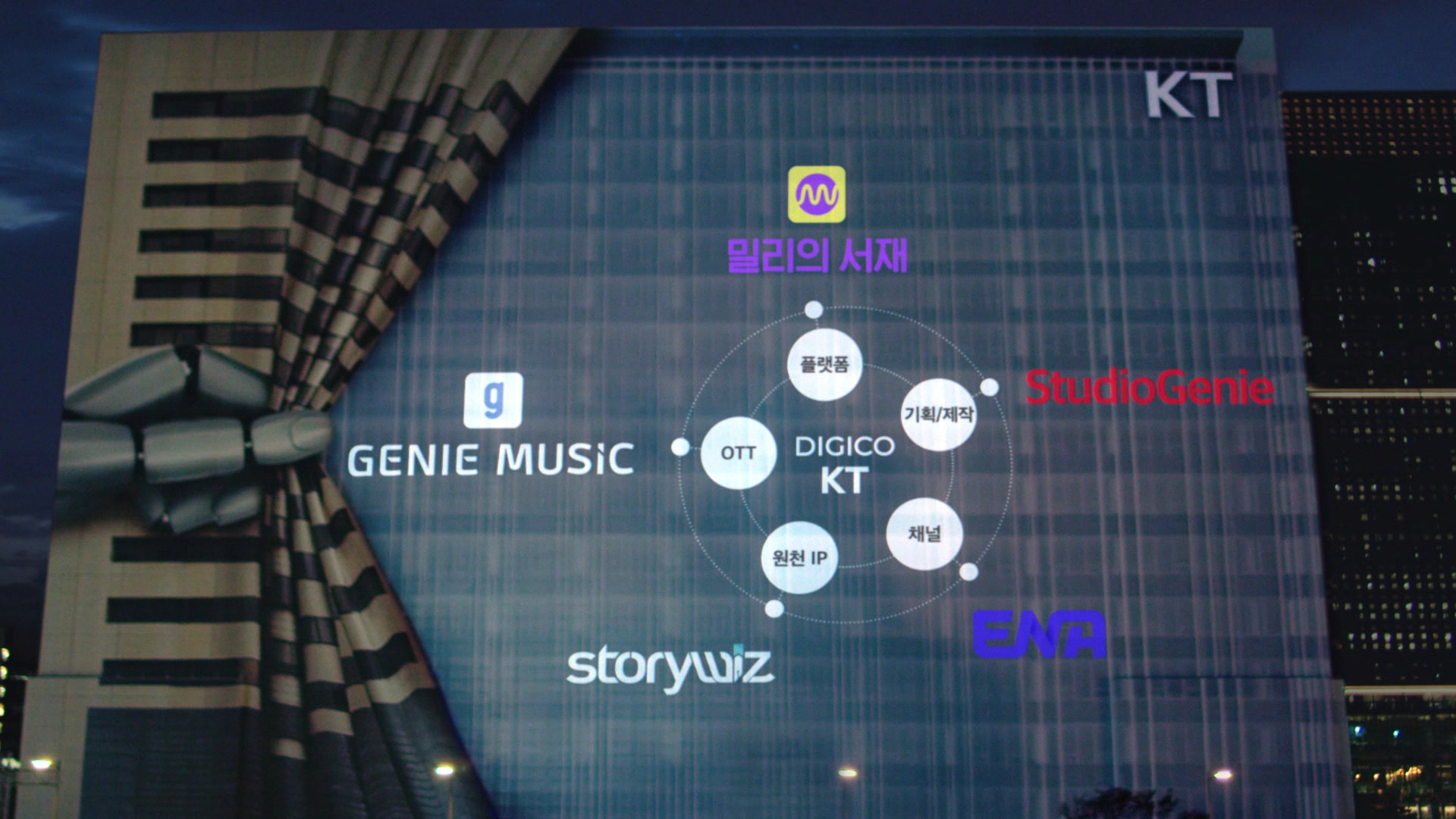 KT는 DIGICO 성장의 한 축인 미디어 콘텐츠 영역에서 작년 KT스튜디오지니 설립과 국내 1위 독서 플랫폼 밀리의 서재 인수에 이어 올해 ENA(구. 스카이TV)리브랜딩을 단행하는 등 미디어 밸류체인을 강화하고 있다. 아울러 스카이라이프TV와 미디어지니 합병 법인 출범 등 미디어 그룹사간 시너지를 기반으로 종합 미디어 그룹으로 거듭나고 있다. 이번 광고를 통해 DIGICO KT의 미디어 밸류체인에 대한 긍정적 인식이 대중에 확대 될 것으로 기대된다.
