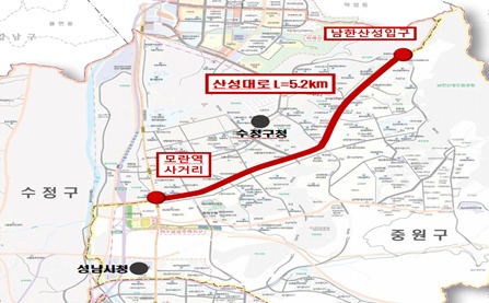 ④ 성남 BRT(남한산성입구∼모란역사거리, L=5.2km)는 구도심의 주요도로인 산성대로의 버스서비스를 고급화하고 지하철(분당선, 8호선)과 주요 간선도로(성남대로)와 연결성을 제고할 계획이다.