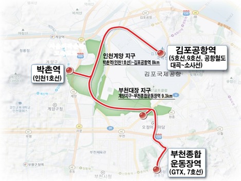 ① 인천계양·부천대장 BRT(김포공항역~박촌역~부천종합운동장역, L=17.3km)는 3기 신도시 계양·대장지구를 GTX, 9호선 등 인근 주요 지하철역으로 연결하여 출·퇴근 시간을 단축할 수 있을 것으로 기대된다.