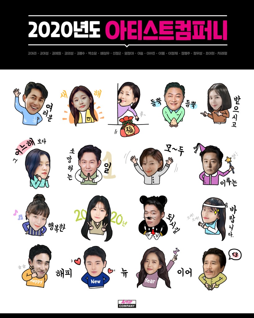 아티스트컴퍼니는 1일 오전 공식 SNS를 통해 “해피 뉴 이어! 모두 새해 복 많이 받으세요. 2020년도 아컴즈와 함께!”라는 멘트와 소속 배우들의 신년 인사가 담긴 스페셜 이모티콘을 공개했다.
