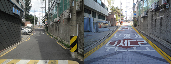 ▲ 보행자 우선도로 개선 전·후