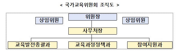 사무처 부서는 교육발전총괄과, 교육과정정책과, 참여지원과 등 3개로 구성됐다.