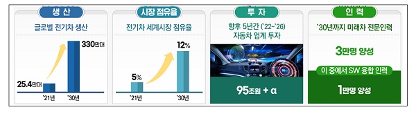 5년간 '95조원+α' 투자 촉진...미래차 전문인력 3만명 양성