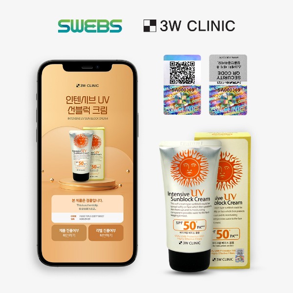 국내 대표 화장품 유통사인 한국자이화장품의 3W클리닉 ‘인텐시브 UV선블럭’에 정품인증 서비스 ‘스웹스’를 도입했다고 밝혔다.