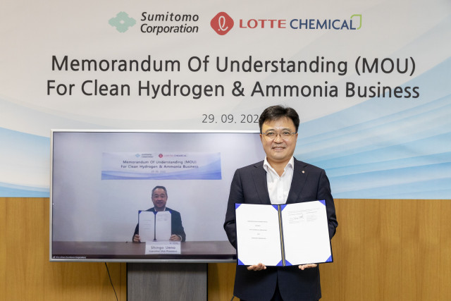 롯데케미칼과 일본 스미토모 상사가 청정 수소·암모니아의 생산과 기술에 공동으로 개발·투자하며 한일 양국 수소경제 활성화와 탄소감축에 협력한다.