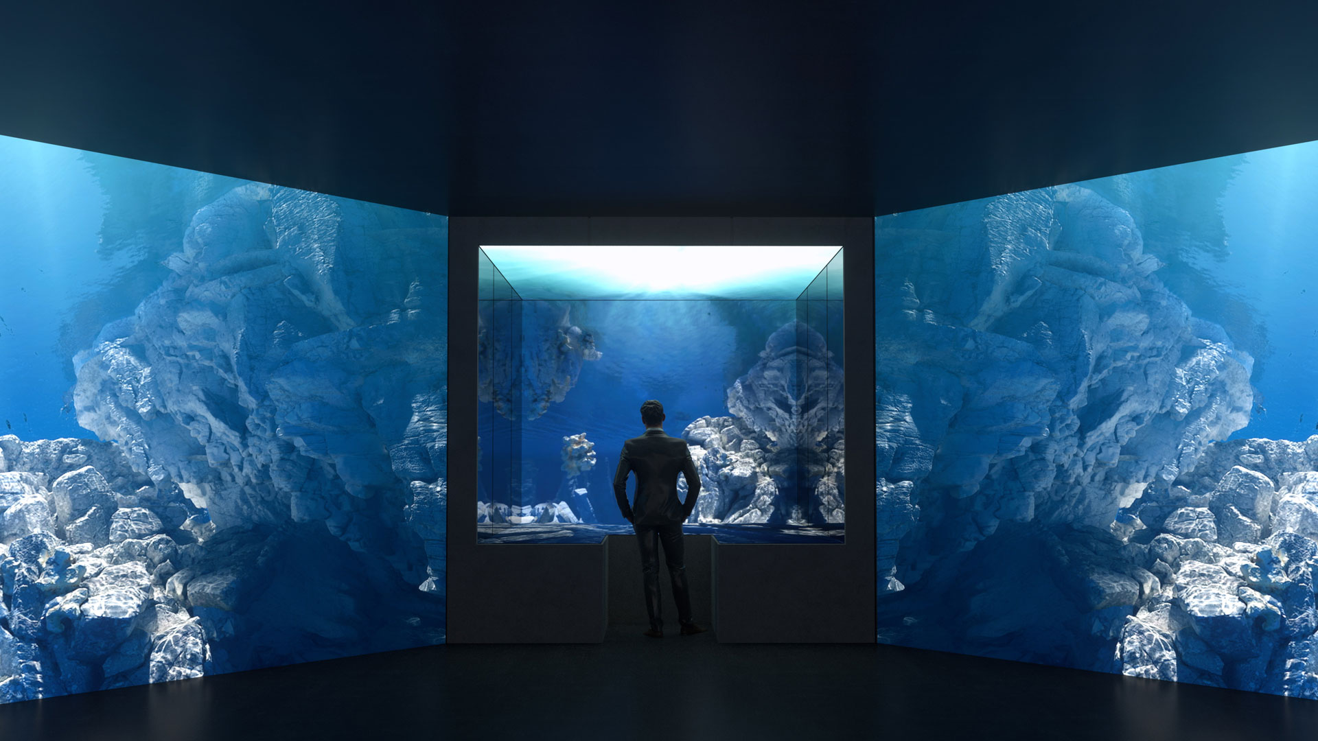 ④ Power to Progress(미래를 향한 혁신적 시도): 양쪽 벽면이 거울로 이뤄진 통로 너머로 공중에 떠있는 작품을 마주할 수 있으며, 조명의 역동성과 함께 서로 반사되어 무한한 빛 속에 있는 듯한 경험을 제공한다.