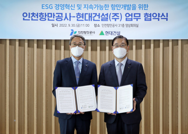 현대건설이 지속 가능한 사회와 환경 조성을 위해 인천항만공사(Incheon Port Authority, 이하 IPA)와 협업해 ESG 경영에 박차를 가한다.