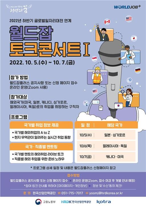 한편 이번 행사에 참여를 원하는 구직자는 각 설명회와 멘토링 시작일 전날까지 월드잡플러스에서 신청하면 되는데, 신청자에 한해 화상시스템 접속 방법을 안내한다.