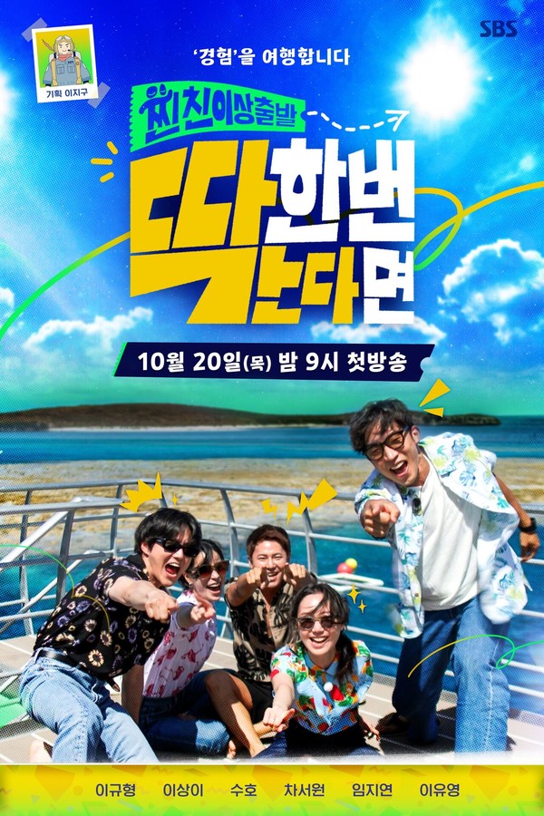 오는 10월 20일(목) 밤 9시에 첫 방송되는 SBS 신개념 여행 리얼리티 ‘찐친 이상 출발 : 딱 한 번 간다면’(이하 ‘딱 한 번 간다면’)의 1차 포스터가 전격 공개됐다.