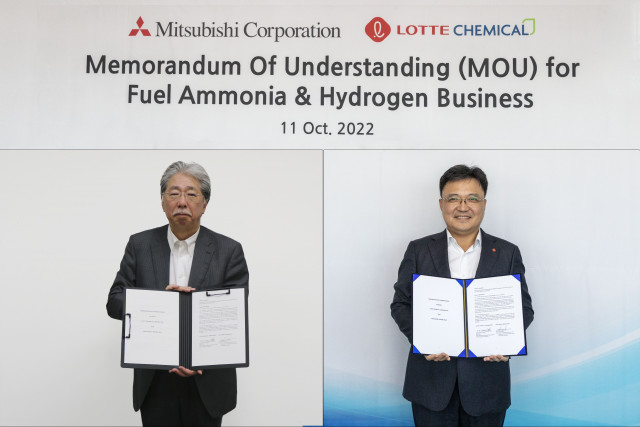 양 사는 11일 오후 롯데케미칼 황진구 수소에너지사업단장(기초소재사업대표 겸임), 미쓰비시상사 하바 히로키(Haba Hiroki) 차세대 연료·석유사업본부장을 비롯한 관련 임직원이 참석한 가운데 업무협약(MOU)을 체결했다.