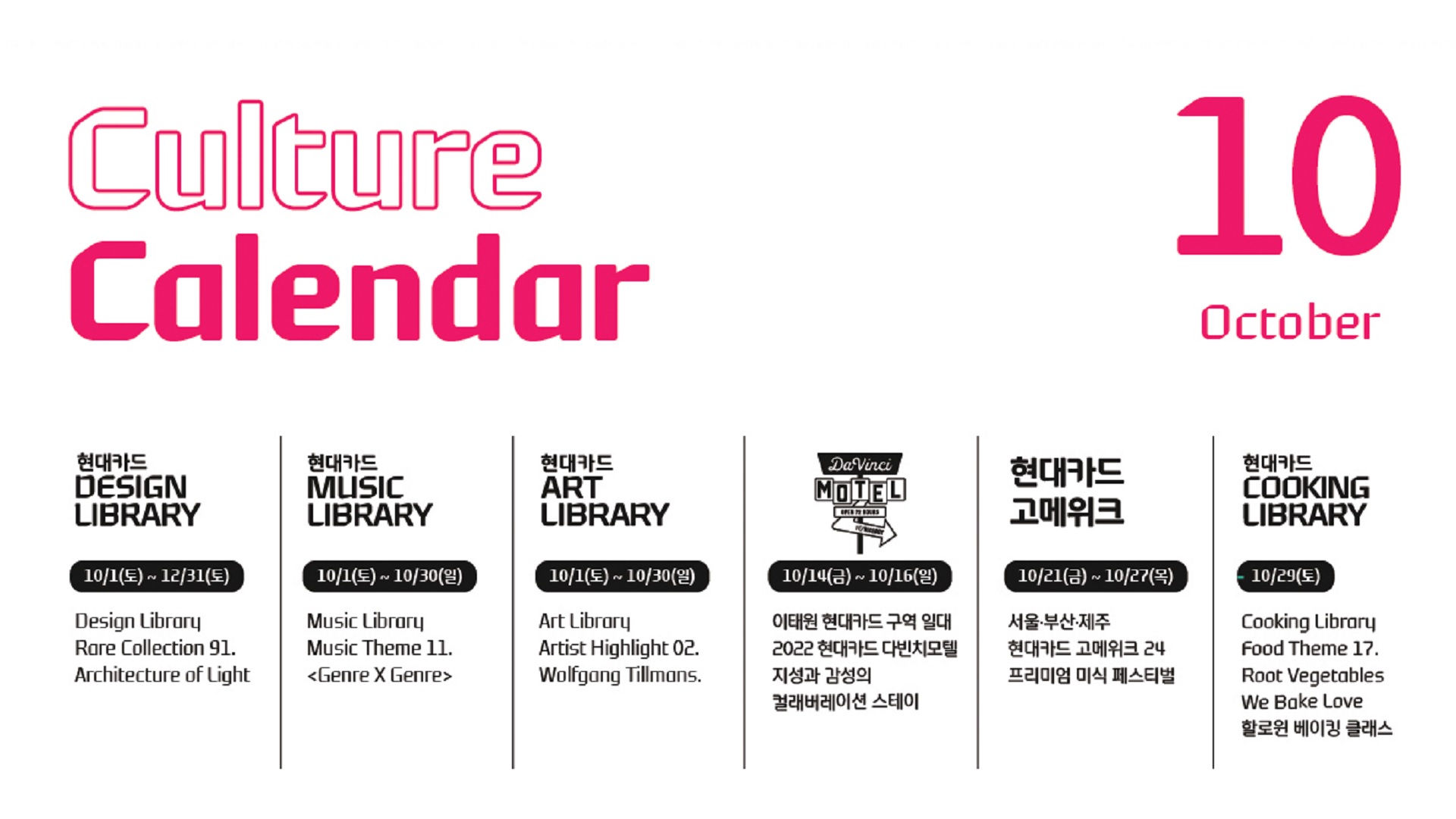 현대카드의 10월 문화 이벤트에 대한 자세한 내용은 현대카드 DIVE 앱에서 확인할 수 있다.