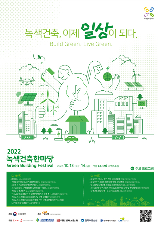 ‘녹색건축, 이제 일상이 되다(Build Green, Live Green)’를 주제로 한 이번 행사에서는 포럼·세미나·컨퍼런스·청소년 진로탐색 교육 등 다양한 프로그램이 진행된다.