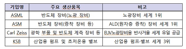 산업통상자원부는 문동민 무역투자실장이 지난 11일부터 13일까지 네덜란드와 독일에서 ASML·ASM·칼자이스 등 반도체 장비 분야 핵심기업 3개사와 조선 기자재 핵심 기업 KSB를 직접 방문해 이같은 성과를 냈다고 14일 밝혔다.