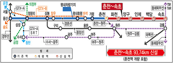 또 그동안 접경지역 특성상 지역 발전에 제약이 있던 화천, 양구, 인제군에 최초로 철도역이 신설돼 지역 발전에 전환점이 될 것으로 기대된다고 국토부는 설명했다.