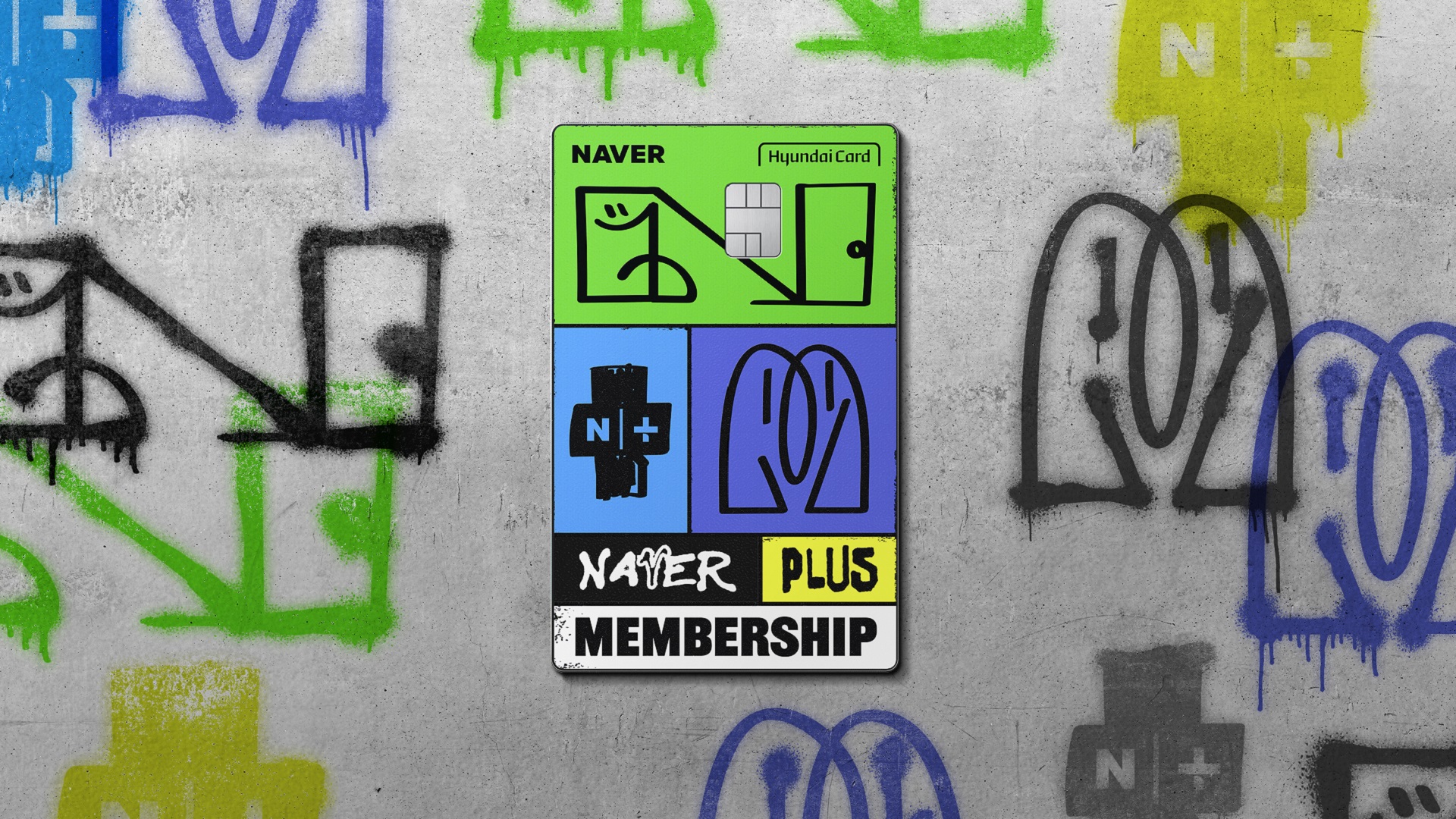 이번에 선보이는 플레이트 디자인 ‘그래피티(Graffiti)’는 네이버 현대카드의 핵심 혜택인 ‘네이버플러스 멤버십’을 네이버 현대카드 주 사용층인 2030의 젊고 자유로운 감성을 담아 거리 예술인 ‘그래피티’ 형식으로 나타낸 것이 특징이다. 네이버 현대카드를 발급받으면 네이버플러스 멤버십을 무료로 이용할 수 있다.