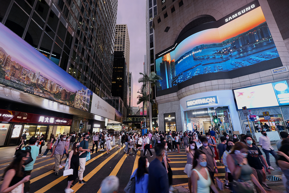 삼성전자가 2030 부산세계박람회 유치위원회와 함께 영국 런던 피카딜리 광장, 홍콩 엔터테인먼트 빌딩 등 전 세계 주요 랜드마크의 대형 LED 전광판을 통해 ‘2030 부산세계박람회’ 홍보 영상을 선보이고 있다.