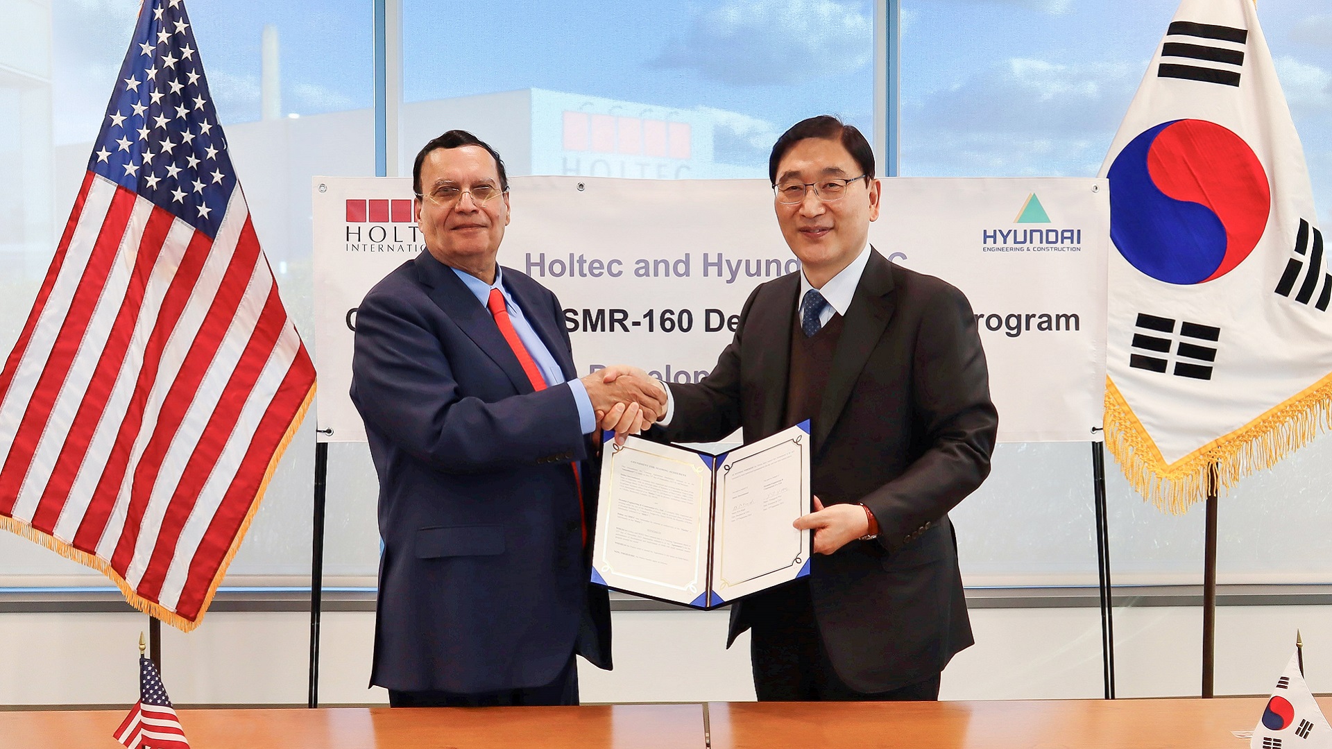 미국 뉴저지주 캠던에 있는 홀텍 캠퍼스에서 진행된 이날 행사에는 현대건설 윤영준 사장, 홀텍사 크리쉬나 P. 싱(Dr. Kris Singh) 대표(CEO & President) 등 양사 관계자들이 참석한 가운데 진행됐다. 이는 작년 11월 현대건설과 홀텍사가 소형모듈원전 공동 개발 및 사업 동반 진출에 대한 협약 이후 첫 공식 행보다.