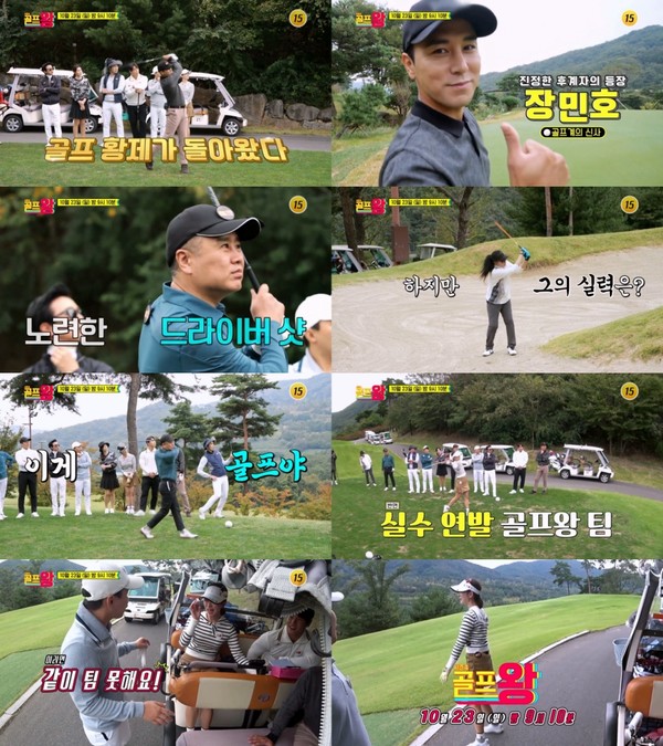 23일 방송될 ‘골프왕4’ 예고편에는 골프왕의 든든한 맏형이자 골프계의 신사 장민호가 등장해 환호를 자아냈다. 김국진의 진정한 후계자에 도전하는 포스를 지닌 장민호와 함께 양세형X박선영X조충현X윤성빈은 기세가 등등해졌고, 그런 이들과 숨 막히는 한 판 승부를 벌일 초강력 게스트 군단이 골프왕을 찾았다.