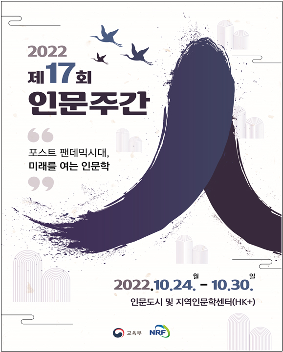 교육부와 한국연구재단은 이달 24∼30일을 ‘제17회 인문주간’으로 정하고 전국 47개 기관에서 인문학과 관련된 강연·체험·전시·공연 등을 진행한다고 20일 밝혔다.