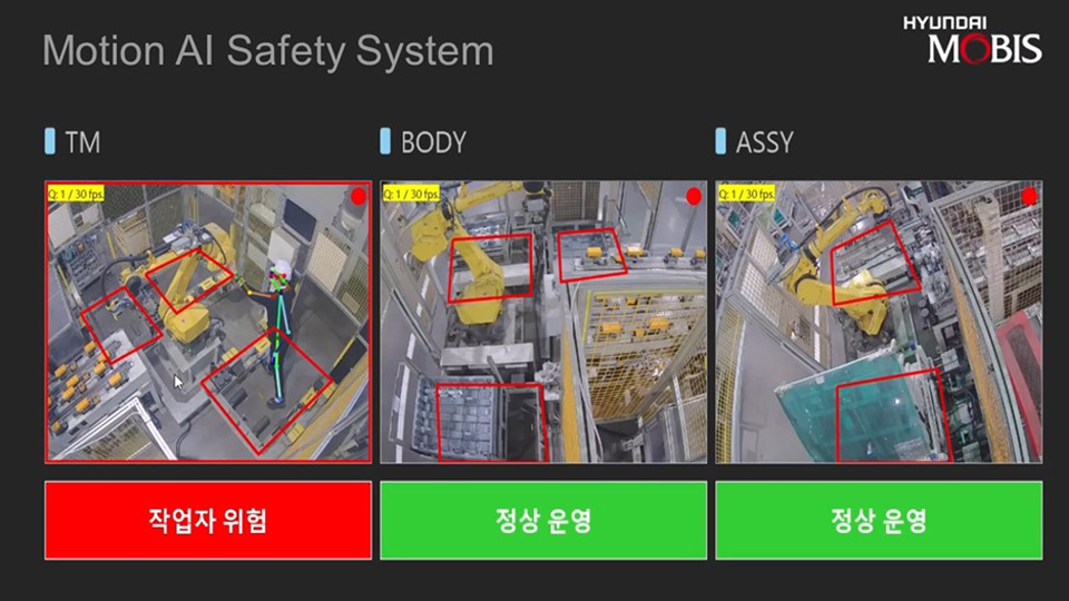 현대모비스가 자체 개발한 인공지능(AI) 솔루션을 활용해 생산공정 안전사고 예방에 나섰다. 비디오 분석과 AI 알고리즘을 적용해 생산라인의 작업자 안전을 획기적으로 개선하고, AI와 스마트 팩토리 관련 선행기술을 내재화하는 차원이다.