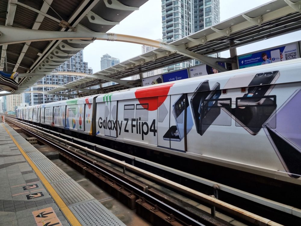 삼성전자는 태국 방콕의 중심지인 수쿰빗(Sukhumvit) 지역을 관통하는 수쿰빗 라인 스카이 트레인(Sukhumvit Line Sky Train)을 갤럭시 Z플립4 이미지로 랩핑(Wrapping) 했다고 밝혔다.