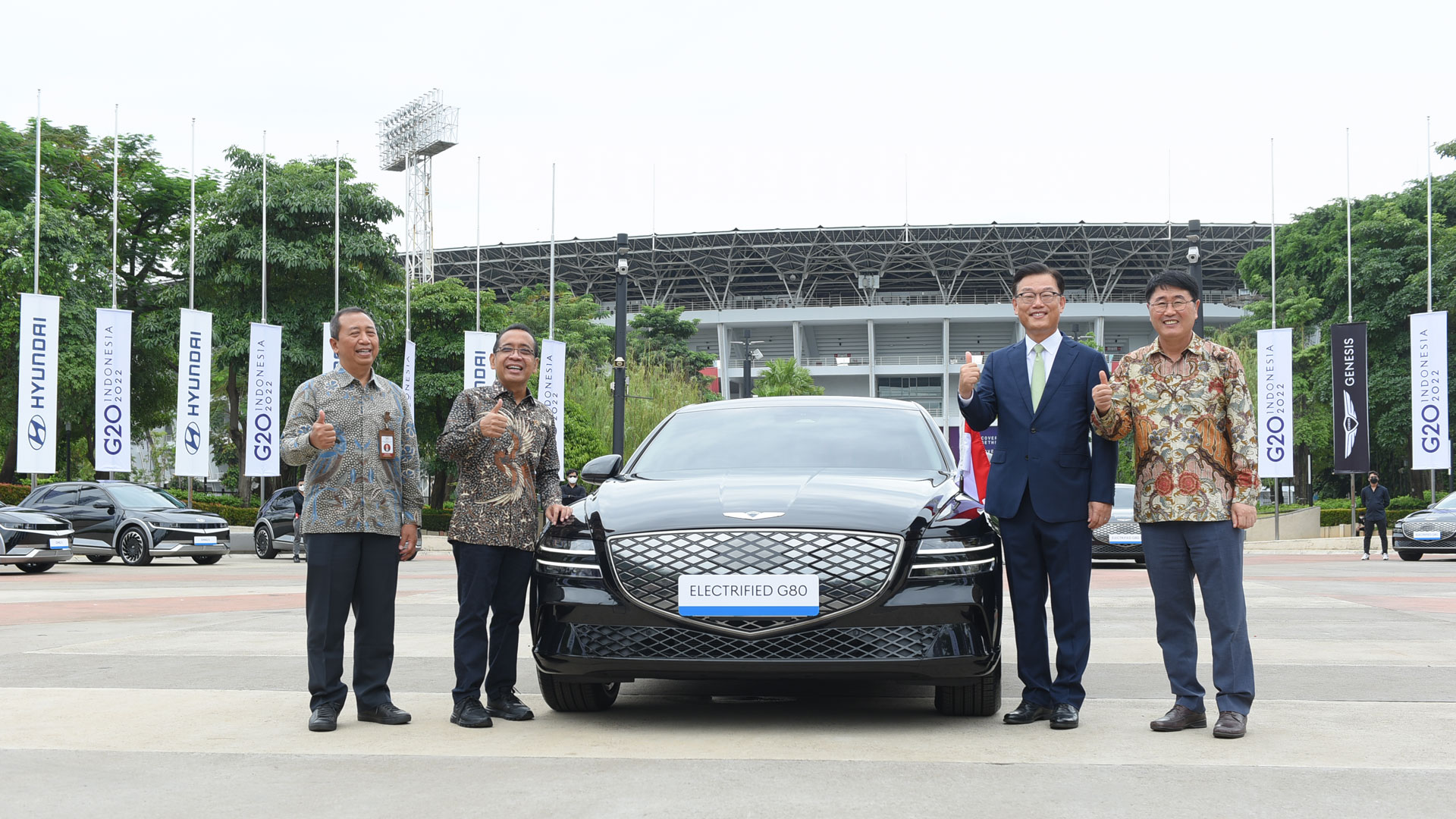 현대자동차그룹은 25일(화) 인도네시아 자카르타 ‘겔로라 붕 카르노 스포츠 컴플렉스(Gelora Bung Karno Sports Complex)’에서 프라틱노(Pratikno) 인니 국가사무처 장관, 박태성 주인도네시아 대사, 이영택 현대차 아태권역본부장 등이 참석한 가운데 ‘G20 발리 정상회의(2022 G20 Bali summit)’ 공식 차량 전달식을 갖고, 정상회의에 사용하게 될 제네시스 G80 전동화 모델과 현대차 아이오닉 5 차량을 전달했다.