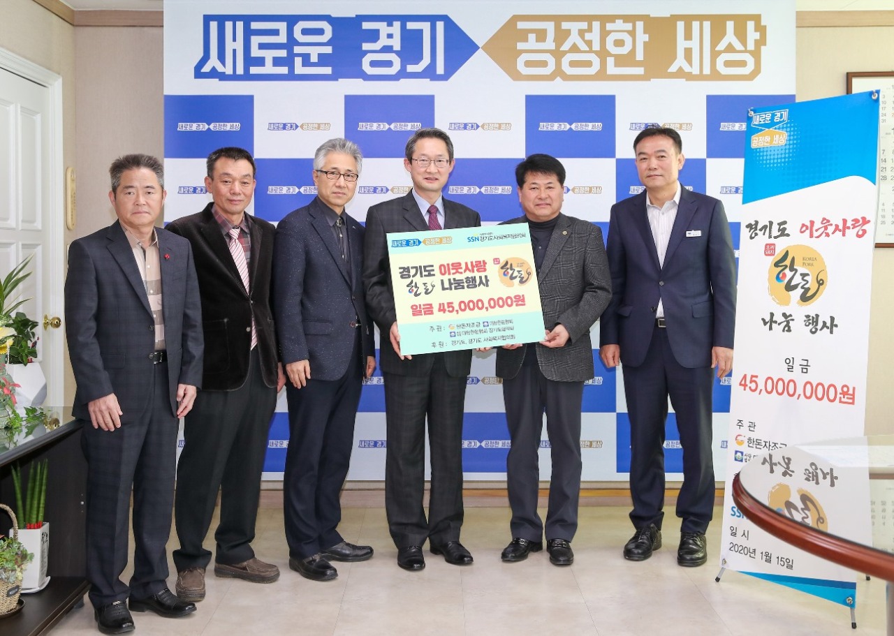 경기도와 사단법인 대한한돈협회 경기도협의회, 경기도사회복지협의회는 15일 오전 경기도청에서 ‘새해맞이 경기도 돼지고기 이웃사랑 나눔 전달식’을 개최했다.