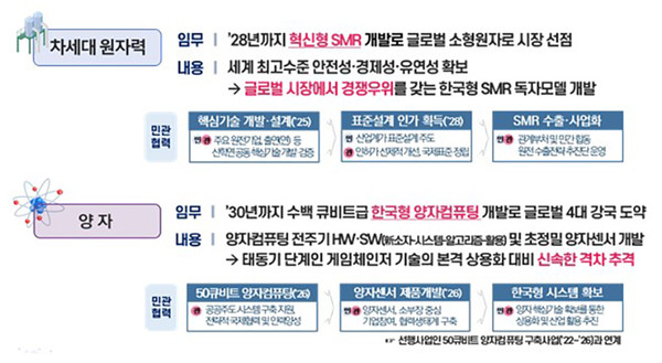 또한 신규 프로젝트 외에도 기존 R&D사업을 연계·확대해 임무지향성을 강화하는 방향으로도 검토하고 내년부터 본격적인 사업 추진을 앞두고 있는 차세대 원자력과 양자 분야를 우선 ‘국가전략기술 프로젝트’로 관리할 계획이다.