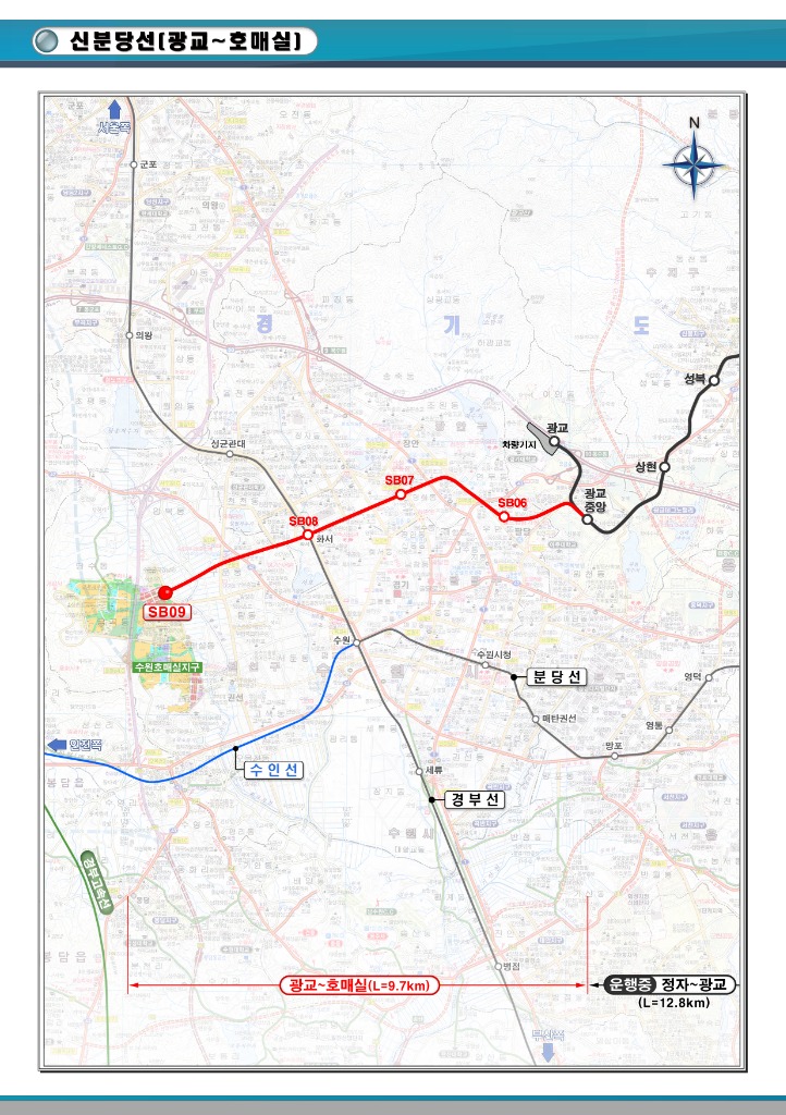 경기 서남부권 주민들의 숙원사업인 신분당선 광교∼호매실 노선이 예비타당성조사를 통과*하여 사업 추진이 확정되었다.
