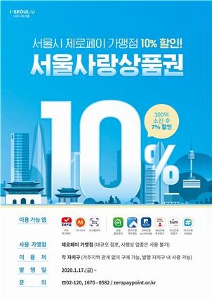 ‘서울사랑상품권’은 소비자에게 상시 7% 할인된 금액으로 상품권을 판매하며, 소비자는 소득공제 30%를 적용받을 수 있다. 가맹점은 연매출액과 상관없이 상품권 결제 건에 대해선 결제 수수료가 없다. 또한 부가가치세 납부세액 공제대상에 상품권 결제액이 포함돼 세부담 완화에도 도움이 된다.