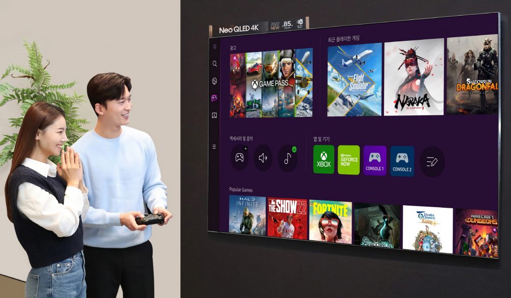 삼성 스마트 TV 사용자는 게이밍 허브를 통해 별도의 콘솔 게임기를 구매할 필요없이 마이크로소프트 엑스박스 게임 패스(Xbox Game Pass), 엔비디아 지포스나우(GeForce NOW)가 제공하는 수백 개의 인기 스트리밍 게임을 즐길 수 있다.