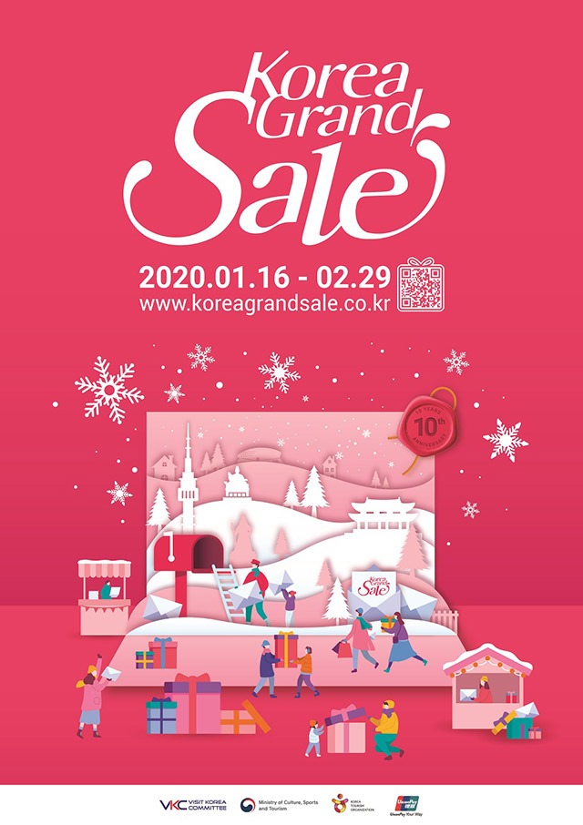 올해 10주년을 맞이한 ‘코리아그랜드세일’은 ‘코리아그랜드세일로의 초대’를 주제로 다양한 분야의 폭넓은 할인 혜택과 함께 한국에서만 즐길 수 있는 한국 대중음악(케이-팝), 한국 미용(케이-뷰티), 한국 음식(케이-푸드), 한국 유산(케이-헤리티지), 한국 겨울(케이-윈터) 등 5대 문화 체험 축제의 현장으로 외국인 관광객을 초대한다.