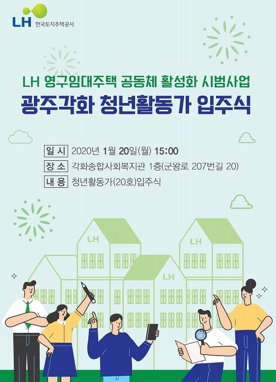 LH는 광주광역시 북구 각화영구임대아파트에서 ‘임대주택 공동체 활성화 시범사업’을 위한 청년활동가 입주식을 개최했다고 20일 밝혔다.