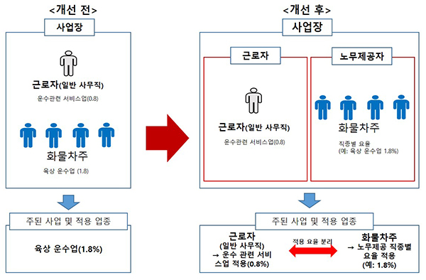 하지만 일부 사업장에서는 기존 근로자보다 특수형태근로종사자가 많아지는 경우가 생겼고, 이들이 소속된 사업의 보험료율을 적용받아 사업장의 산재보험료가 증가하는 사례도 발생하고 있다.