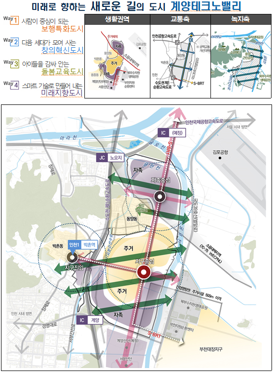 인천 계양 신도시 내에서 전략적 개발이 필요한 지역은 창의적인 공간활용이 가능하도록 특별계획구역으로 지정해 민간의 창의적인 아이디어를 바탕으로 조성하게 된다.