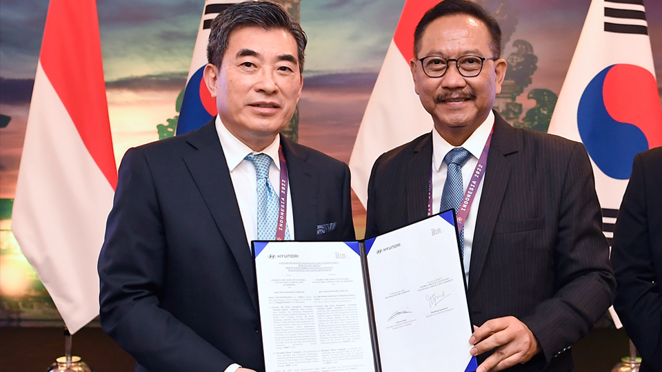 현대자동차그룹은 14일(월) 경제단체 및 기업간 글로벌 협의체 『B20 서밋 인도네시아 2022(B20 Summit Indonesia 2022)』 기간 중 인도네시아 발리에서 인도네시아 신수도청 과 MOU를 체결하고 인도네시아에 AAM 생태계를 구축하기 위해 상호 협력하기로 합의했다.