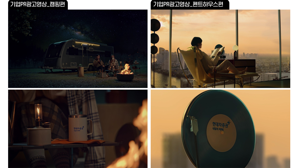 이와 함께 현대차증권은 신규 기업PR 광고영상도 공개했다. 순차적으로 선보이는 기업PR 광고영상은 캠핑편, 펜트하우스편, 풀빌라편 등 총 3편이며, 각각의 공간에서 풍요롭고 여유있는 시간을 보내고 있는 모습을 보여주면서 고객들의 내일을 보다 가치 있게 만들어가는 현대차증권의 브랜드 철학을 담았다.