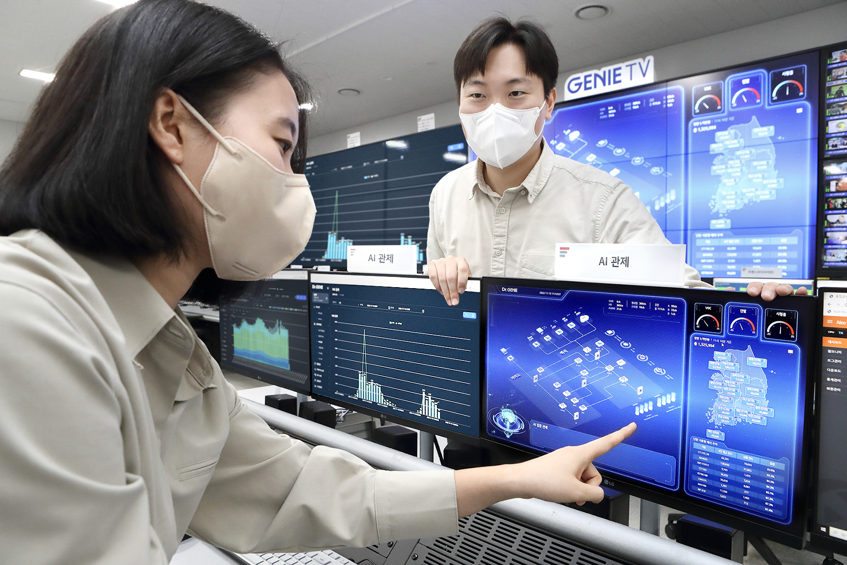 그러나 닥터지니를 활용하면 방송 플랫폼을 관제하는 데 드는 시간과 인력 등을 줄이고, 운용자가 파악하지 못했던 작은 장애도 개선해 고객에게 미디어 콘텐츠를 안정적으로 제공할 수 있다. 개별로 확인해야 했던 고객의 소리(VOC), 셋톱박스 상태, 시청률 현황 등도 한 화면에서 확인할 수 있다.