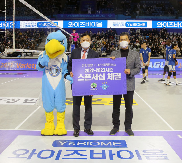 유한양행이 프로배구 인천 대한항공 점보스와 2022-2023 시즌 스폰서십을 체결했다.