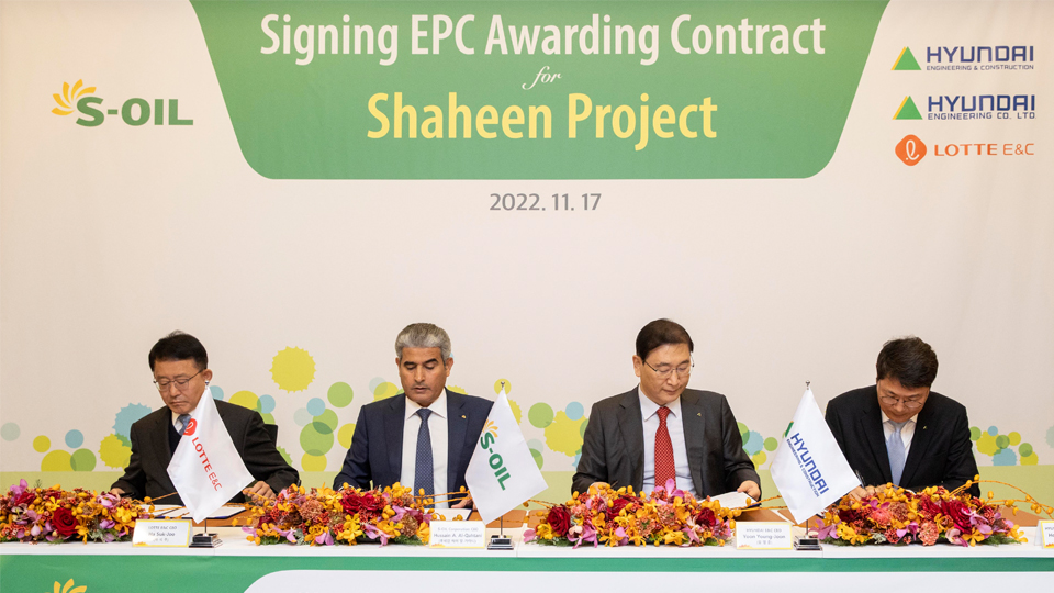 에쓰오일 샤힌 프로젝트 계약 체결은 현대건설 윤영준 대표이사 사장, 현대엔지니어링 홍현성 대표이사, 에쓰오일 후세인 알 카타니 (Mr. hussain Al-Qahtan) 대표이사 사장, 롯데건설 하석주 대표이사가 참석해 발주사와 컨소시엄 참여기업간 서명식을 통해 이루어졌다.