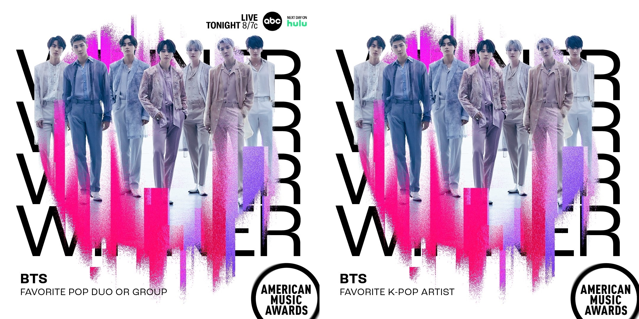 한편, 방탄소년단은 ‘아메리칸 뮤직 어워드’에서 2018년 ‘페이보릿 소셜 아티스트’ 상을 받았고, 2019년에는 ‘페이보릿 팝 듀오/그룹’, ‘페이보릿 소셜 아티스트’, ‘올해의 투어(Tour of the Year)’ 등 3관왕에 올랐다. 이들은 2020년에는 '팝/록(Pop/Rock) 장르 페이보릿 듀오/그룹(Favorite Duo or Group)'과 ‘페이보릿 소셜 아티스트’ 2개 부문 상을 받았고, 2021년에는 대상 격인 ‘올해의 아티스트(Artist of the Year)’를 비롯해 ‘페이보릿 팝 송’, ‘페이보릿 팝 듀오/그룹’ 등 3관왕을 한 바 있다.