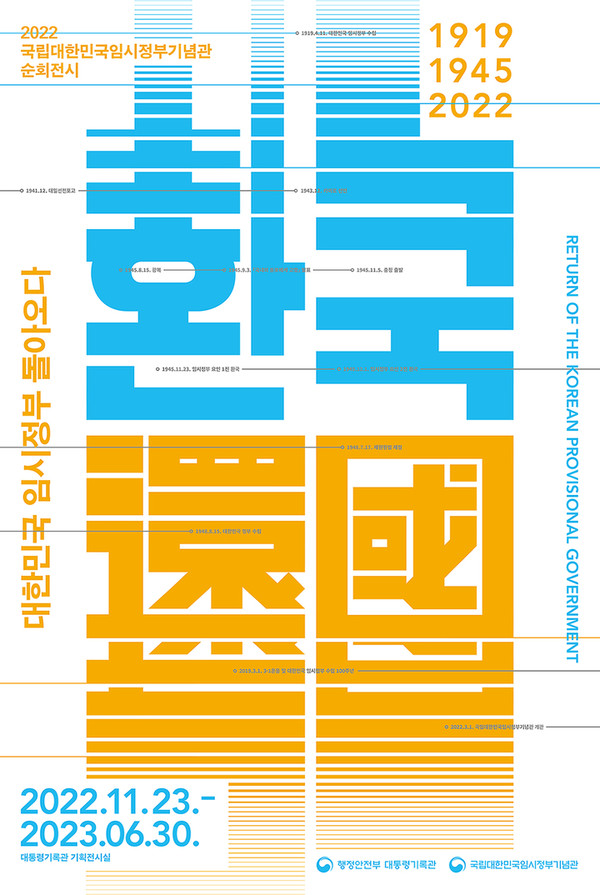 행정안전부 대통령기록관은 23일 국립대한민국임시정부기념관과 공동으로 ‘환국還國-대한민국임시정부 돌아오다’ 특별전시회를 대통령기록관 기획전시실에서 개최한다고 밝혔다.
