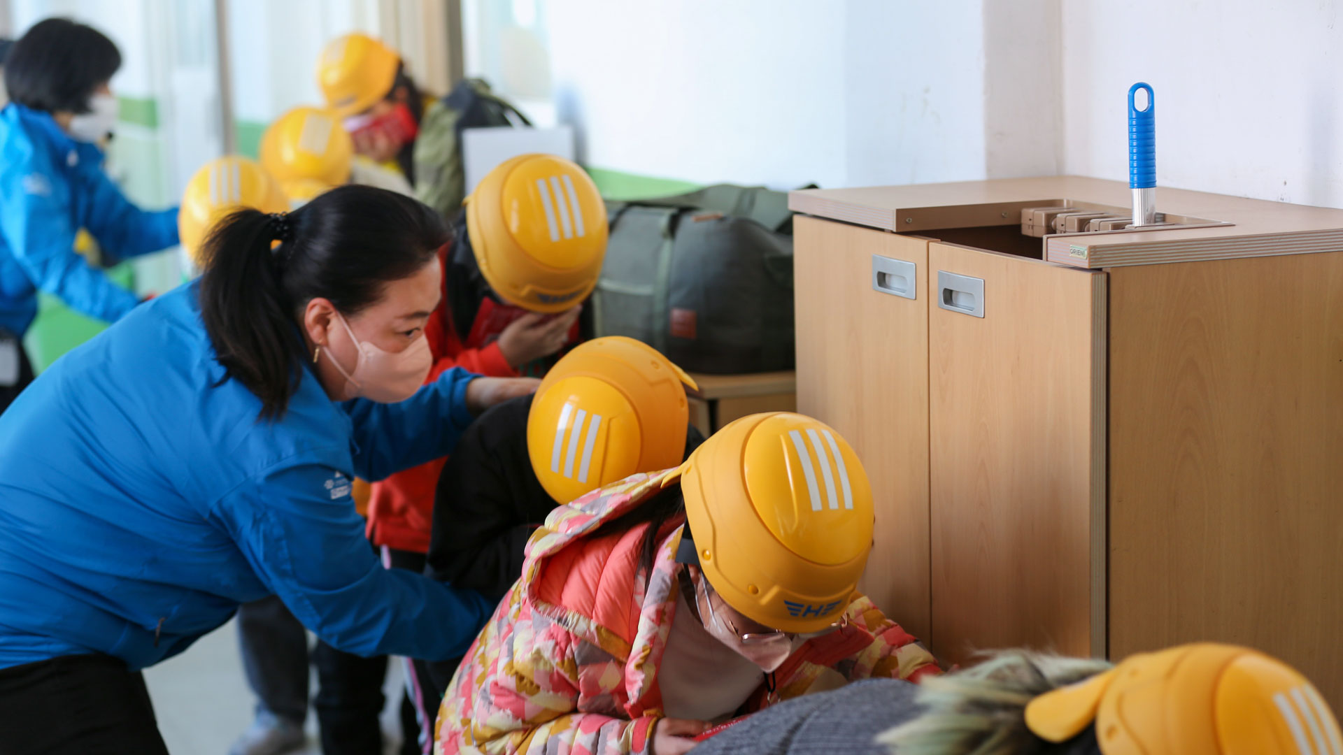 안전모 지급과 더불어 학교에서 자체적으로 재난 안전 종합 교육도 실시하도록 교육을 진행했다. 이번 교육은 이론 중심 교육에서 벗어나 안전모 착용, 지진송 학습, 구조 손수건을 사용한 모의 대피 훈련 진행 등 ‘체험형 안전 교육’을 실시해 실제 재난 상황에서 학생들과 교직원들이 침착하게 대비할 수 있도록 구성했다.