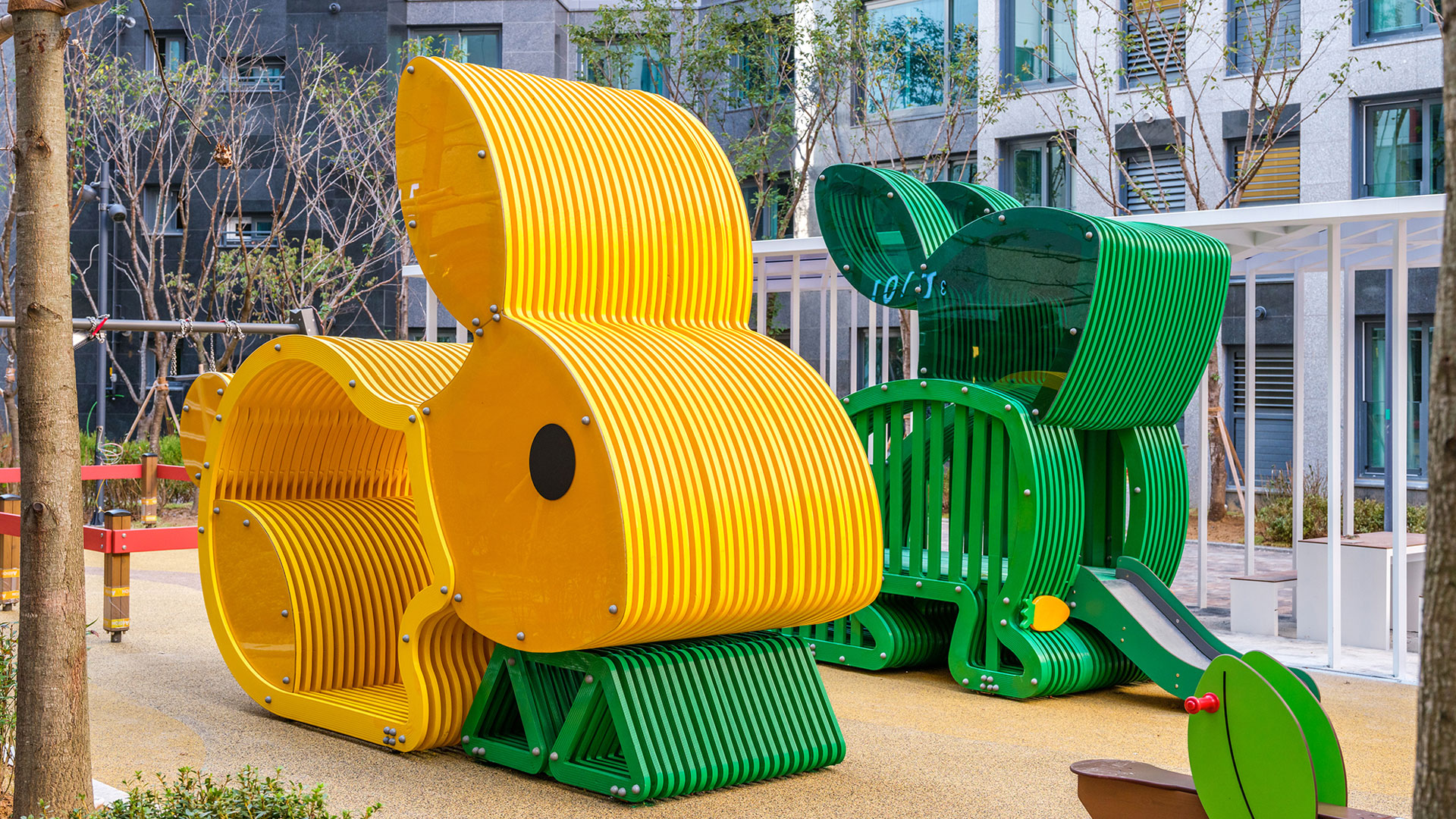 힐스테이트 홍은 포레스트에 설치된 ‘토끼 놀이터’는 어린이들에게 친근한 토끼를 현대건설의 디자인 감각을 거쳐 형상화한 놀이시설물로, 생동감 있는 색상과 함께 다양한 형태를 통일감 있게 표현하고 있어 뛰어난 조형미를 느낄 수 있는 것이 특징이다.